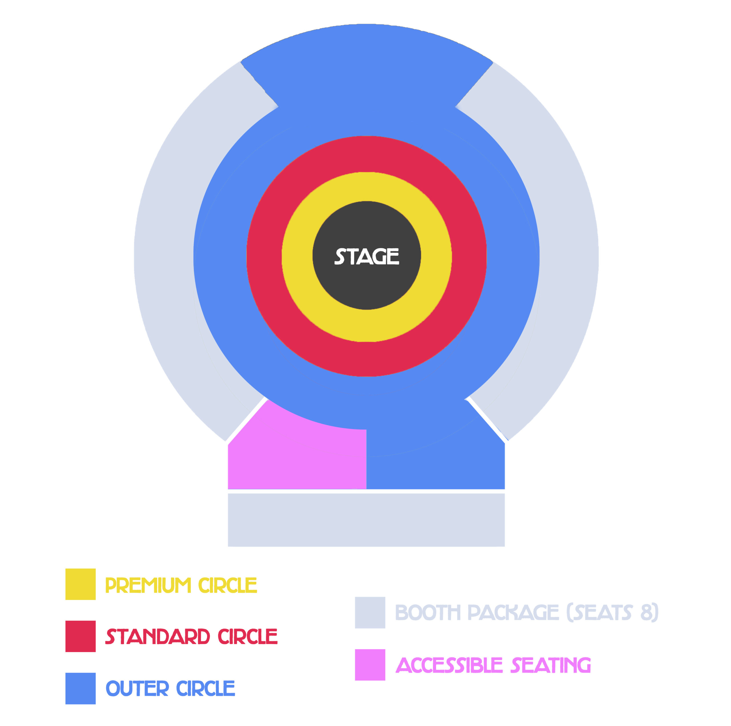 For our seated shows we have a designated accessible area with 6 spaces for wheelchairs. All 6 spaces each have a seat next to them for a companion.